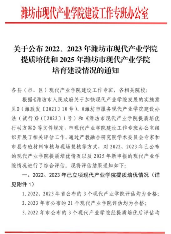 喜讯!我校潍坊风筝产业学院入选2025年潍坊市现代产业学院培育名单